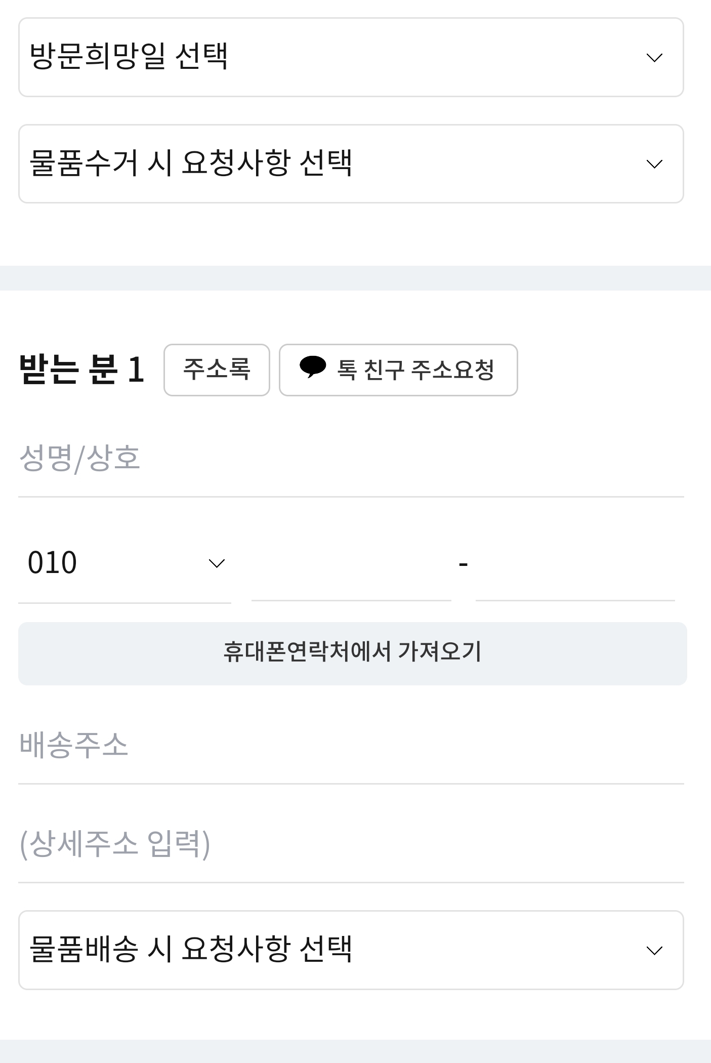 박스 크기를 결정햇으면 방문희망일등 정보를 기입하고, 결재를 하면 마무리 됩니다!