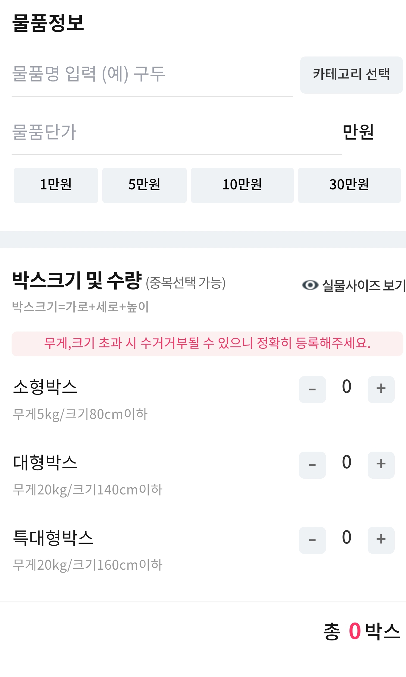 크기만 제대로 기입했다면 어려울것이 없는 택배파인더 어플이용방법입니다^^