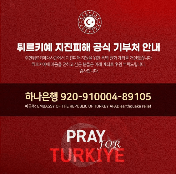 주한튀르키예대사관 트위터를 확인하시면 정확이 아실수 있습니다.